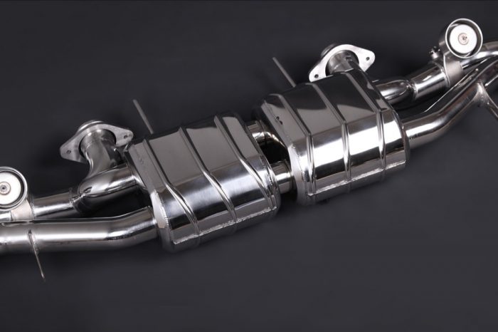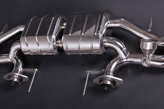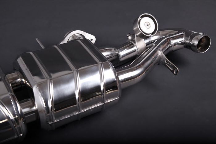 Die Anlage ist komplett aus 1.4828 Edelstahl gefertigt und verfügt über zwei Abgasklappen. Die Ansteuerung der Abgasklappen kann über die originale Klappensteuerung erfolgen, oder optional mit unserer programmierbaren Steuerung.