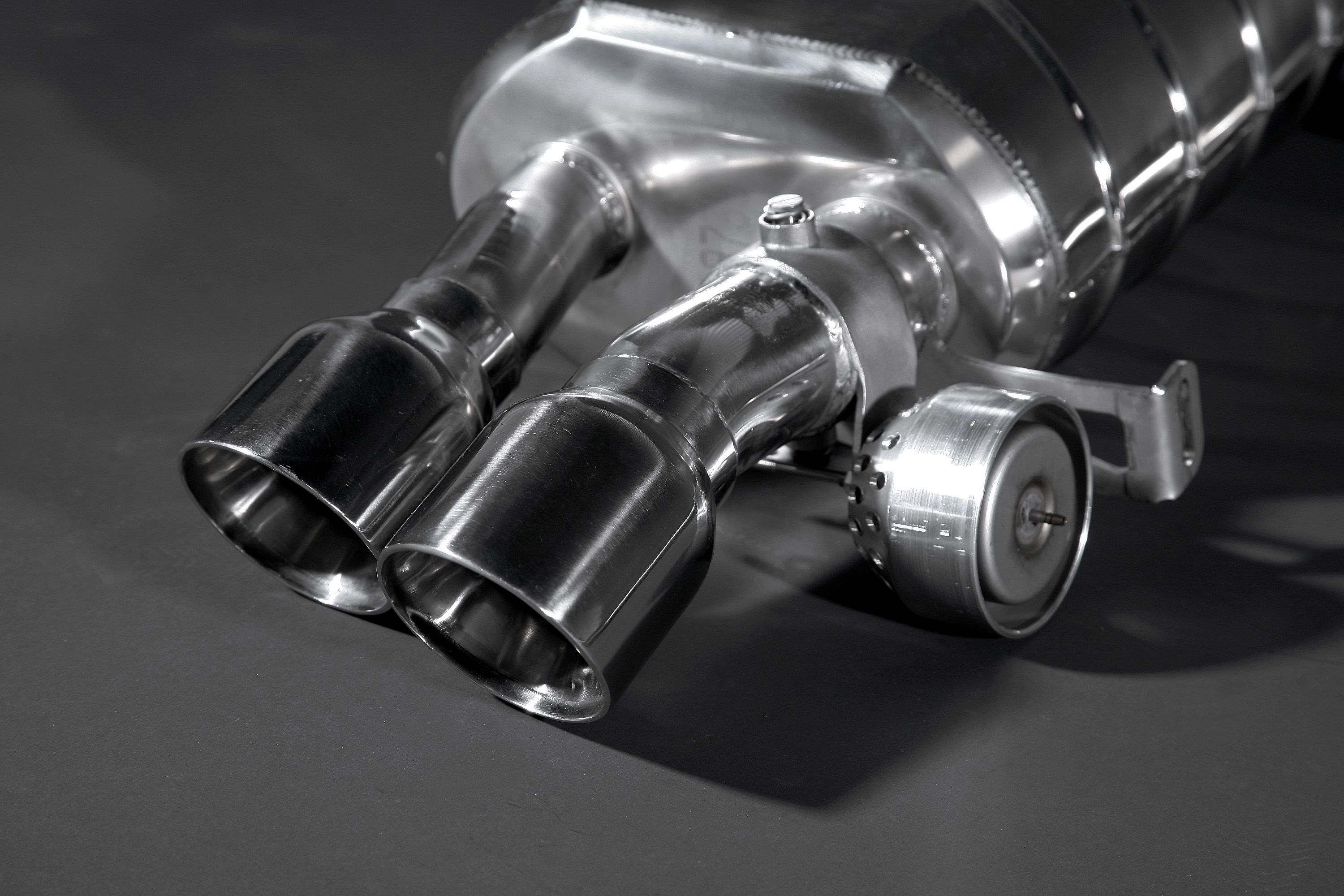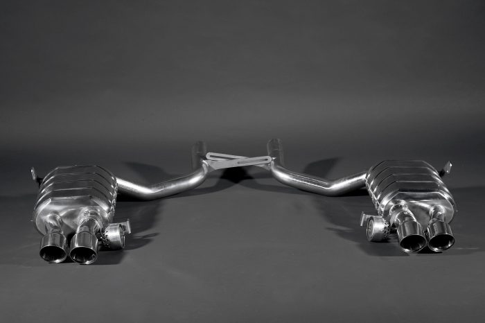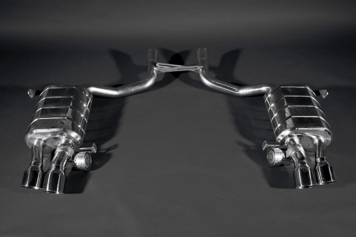 Staudrucküberwachte Abgasanlage mit 2 Abgasklappen für den Maserati Quattroporte (Serie V) aus 1.4828 Edelstahl. Optional gits es noch eine X Pipe, die den hellen Klang des V8 Motors noch deutlicher hervorbringt. Die X-Pipe passt erst ab Modelljahr 2008. Incl. CES-3
